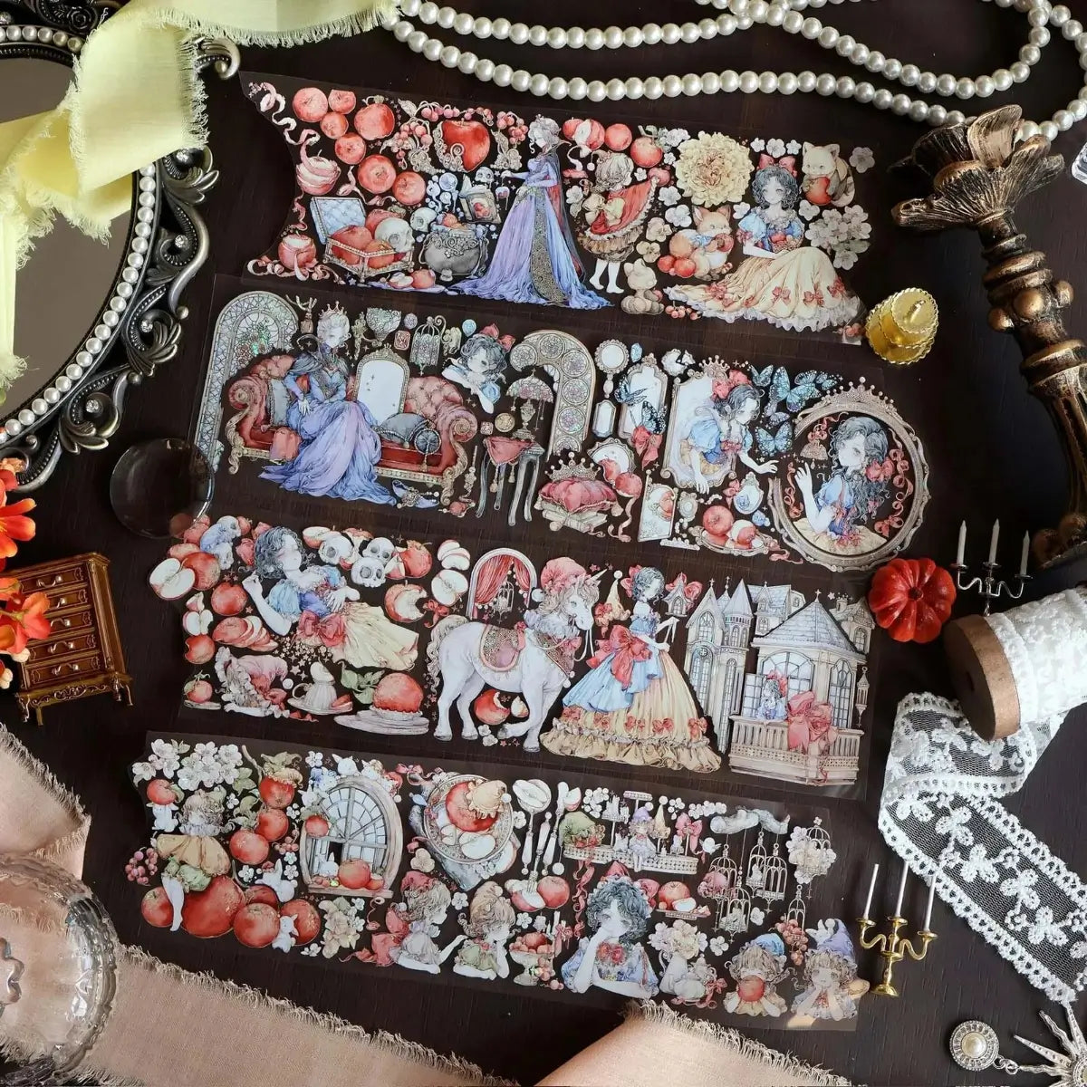 The Snow White PET Tape - Shattered-shell Effect brings the classic fairy tale to life with soft, iridescent colours and intricate detail. Inspired by the story’s subtle beauty and hidden darkness, it features hand-drawn illustrations of Snow White, the Evil Queen, and enchanting forest elements, shimmering with a crystal-like glow.